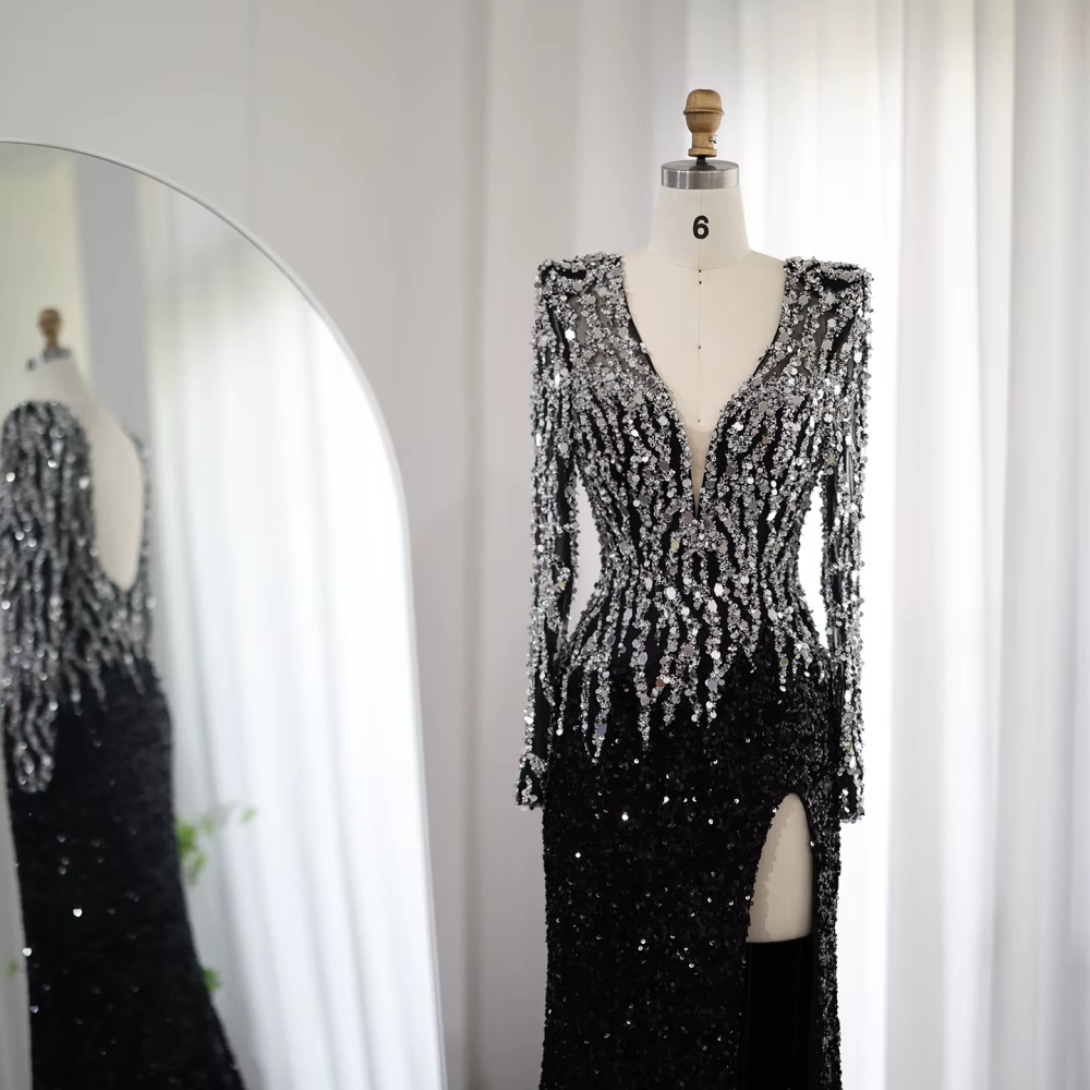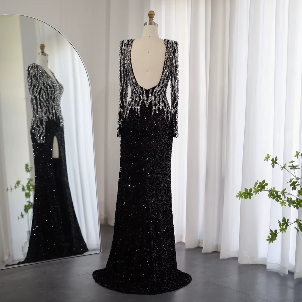 • اسم المنتج: فستان سهرة V بأكمام وفتحة الظهر والساق