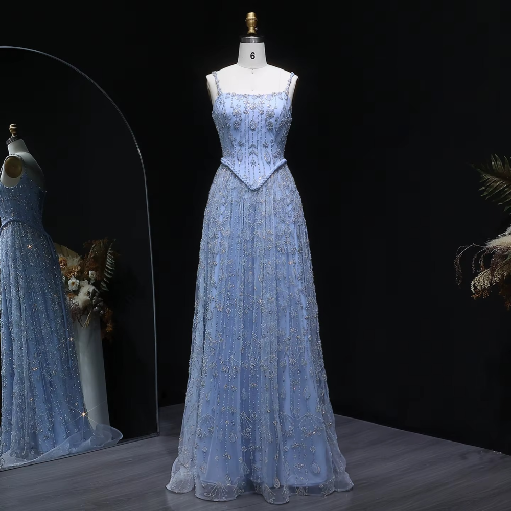 - اسم المنتج: فستان سهرة مطرز مع حزام
