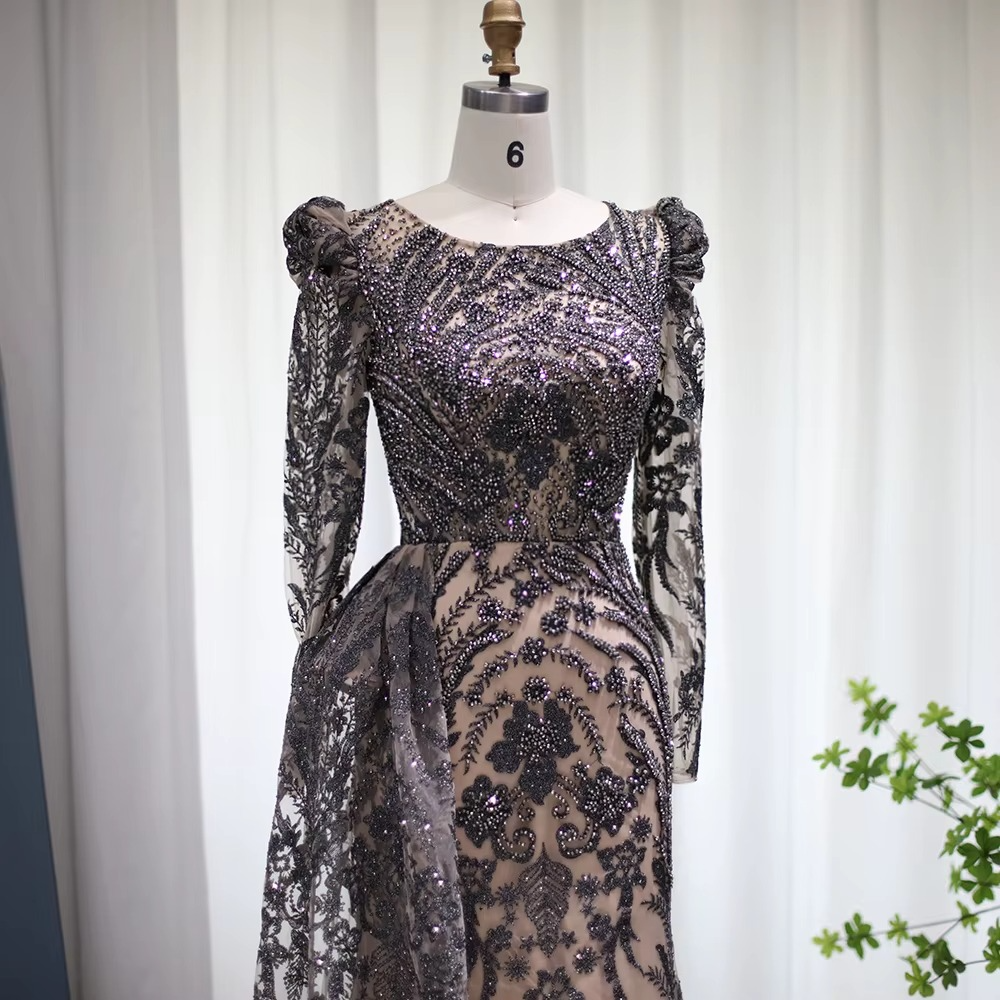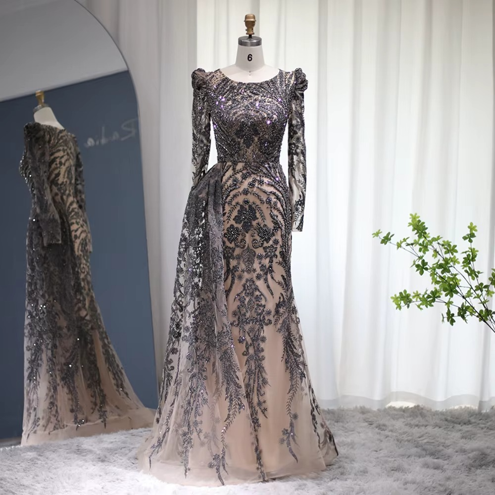 - اسم المنتج: فستان سهرة بأكمام وذيل