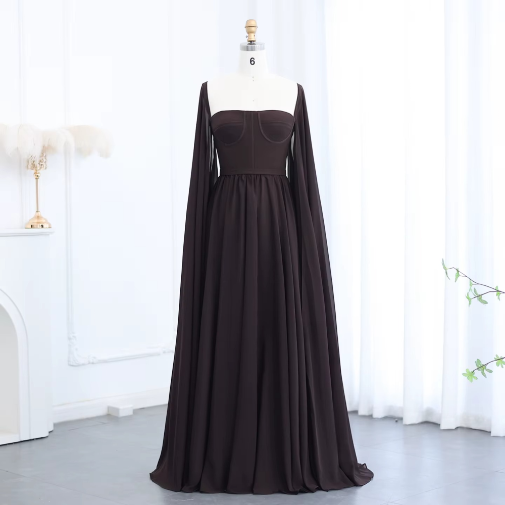 • اسم المنتج: فستان سهرة ناعم شيفون بأكمام كيب